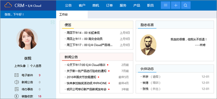 E/4 Cloud系统为适合新形势下移动互联网模式而开发的一套全新的云CRM平台,并结合以往针对中小企业的CRM建设经验,融合鹏为十年来的CRM实践而研发的一款全新的针对中小企业的CRM解决方案。包括内部办公、客户管理、售前管理、销售管理、服务管理、决策分析、移动应用等基础应用模块。